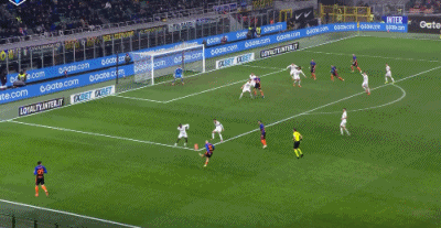 第41分钟,迪马尔科传中,劳塔罗禁区跃起头球破门,国米2-2比萨